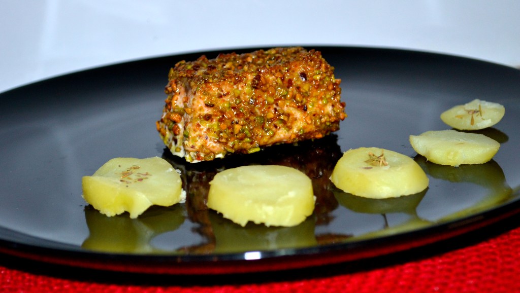 Dopo un primo impegnativo (per realizzazione e digestione 🙂 ) passiamo alla portata principale: un ottimo piatto per continuare l’abbuffata di Natale (ma da ripetere spesso 😉 ) . Il gusto intenso e succulento del salmone cotto a puntino, esaltato dalla croccante sapidità dei pistacchi, manderà in estasi le papille!