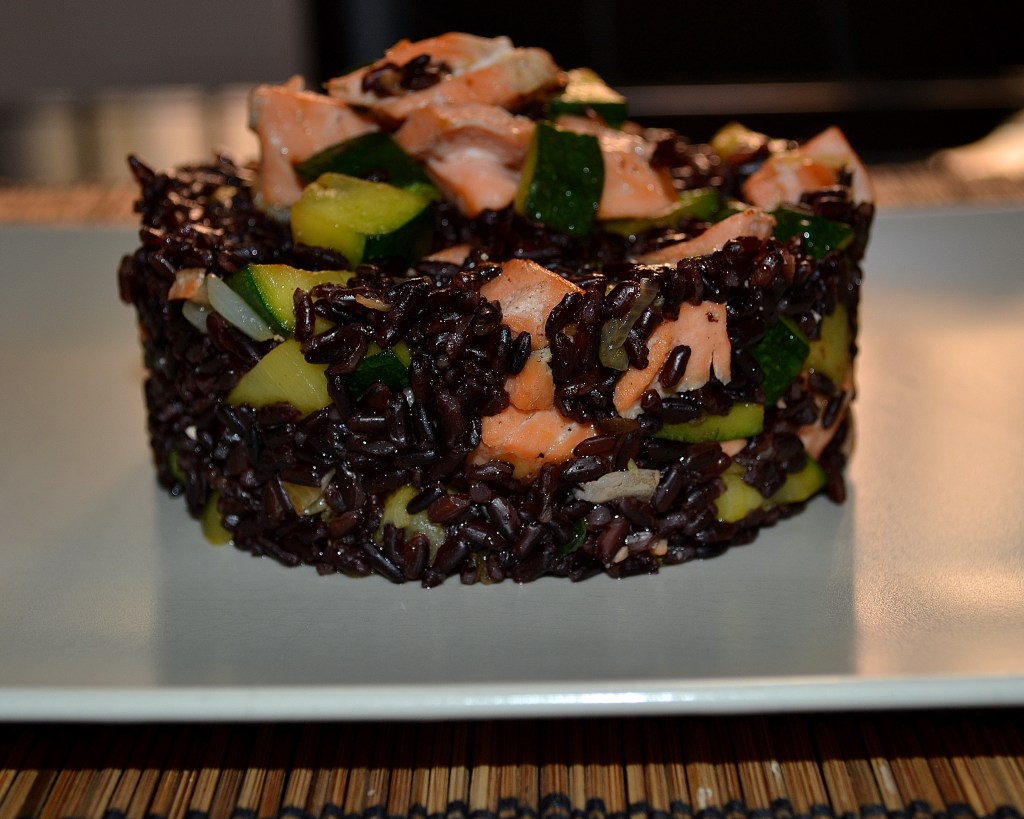 - Impiattate con un coppapasta, pressando bene ed adagiando sopra qualche pezzo di salmone e zucchine. Buon appetito! 🙂