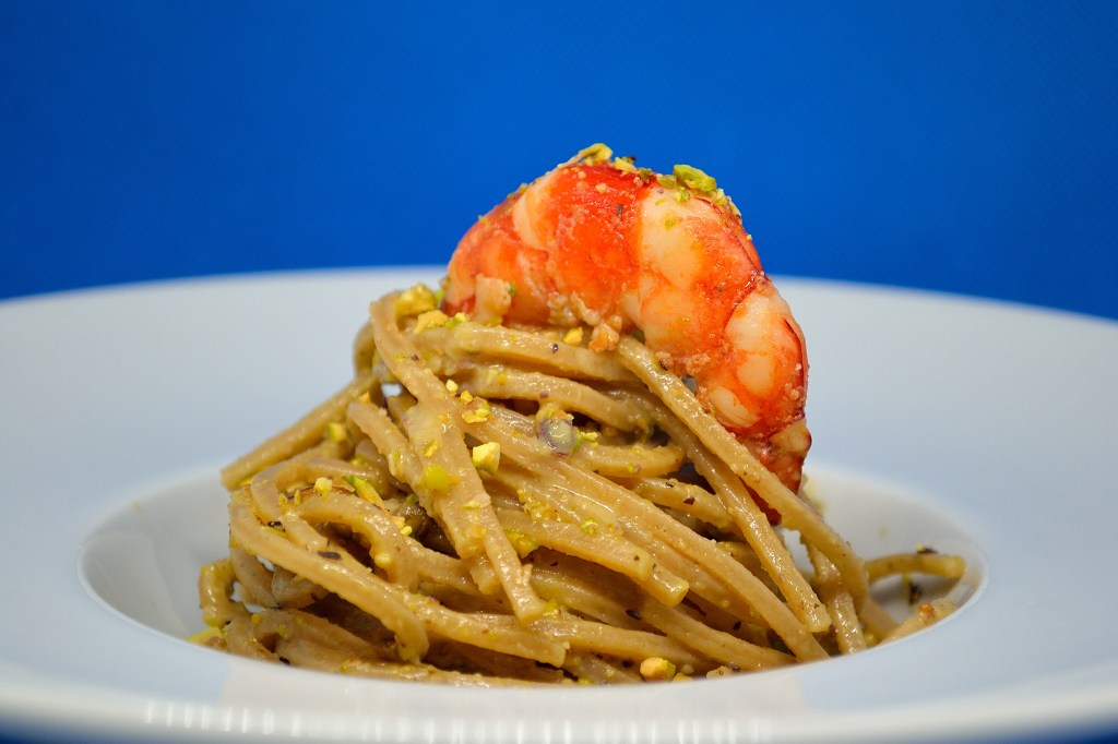 Il punto cardine del patto è il pesto di pistacchi e pinoli tostati ; questo è il ”segreto” che conferisce al nostro primo quel gusto che conquista ed avvolge il palato assieme al gambero. Ad esaltare il tutto una pasta corposa, spessa e dal gusto sostenuto per reggere i sapori decisi: uno spaghetto quadrato n.11 integrale de @pastalamolisana: spaziale!!