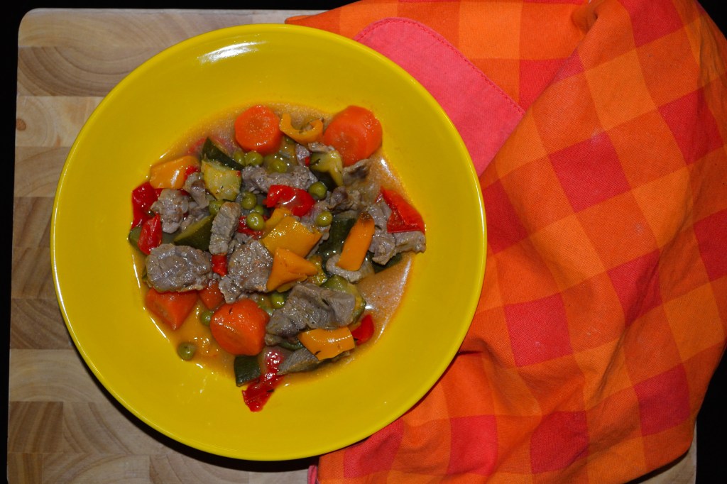 Lo spezzatino di carne infatti è un piatto tipicamente invernale, ma noi lo renderemo più fresco ed estivo con il mix di verdure di stagione requisite al mercato e tagliando i grassi: andremo infatti ad utilizzare un taglio di carne molto più magro del solito e non useremo le patate, ma le zucchine, più fresche e leggere.