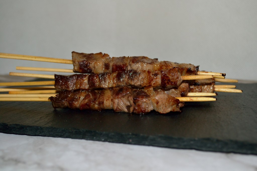 - Se avete il BBQ, preparate la brace in anticipo con della buona carbonella; se invece dovete farli in casa come noi, scaldate bene la piastra e cuocete a fuoco medio gli spiedini per circa 2’ per lato o fino a che saranno ben dorati e rilasceranno il grasso: è fondamentale non stracuocerli per non farli seccare. Ed è qui l’arte della cottura!