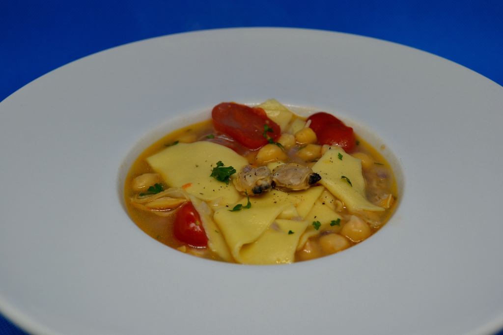 Piatto molto diffuso nella tradizione italiana (soprattutto nelle Marche, dove è un primo tipico) , la minestra di maltagliati con ceci e vongole unisce terra e mare in una portata sana e gustosa.