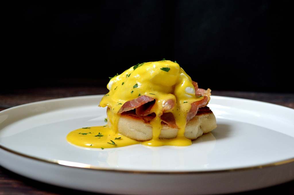 - Su ogni metà di panino disponete le fette di prosciutto e l’uovo, guarnite con la salsa olandese, del prezzemolo tritato finemente ed un giro di pepe nero. Buon brunch USA style a tutti! 🙂
