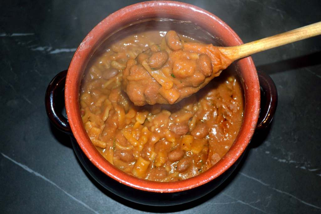- Unite la pasta ed allungate con acqua di cottura dei fagioli (o acqua calda) secondo necessità. Salate e portate a cottura. Dovrà essere bella densa.