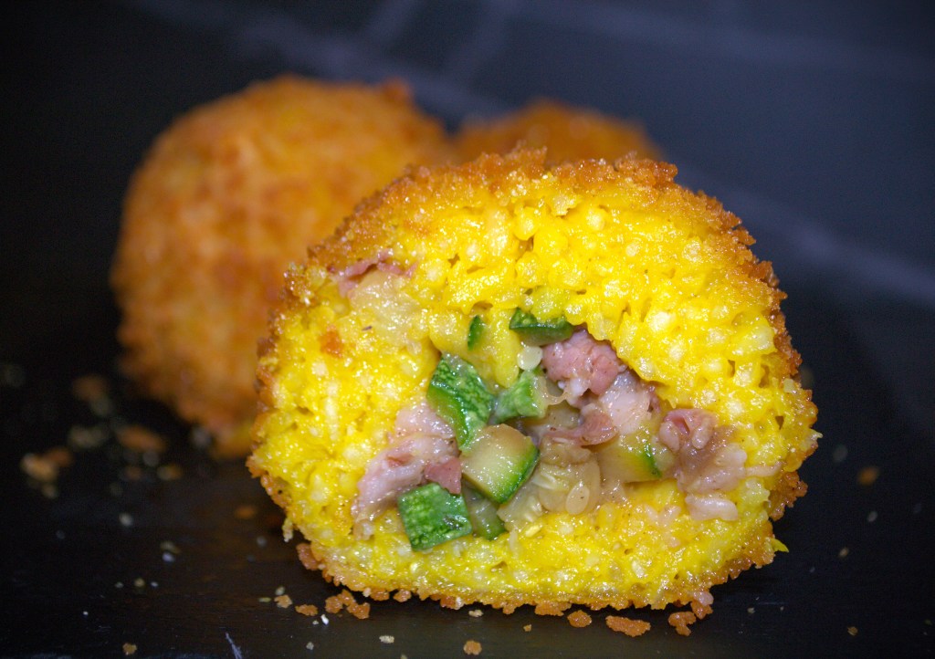 Ecco un tipo di arancini molto gustosi e saporiti, ottimi per qualsiasi occasione: croccanti fuori e con un interno iper goloso e scioglievole in bocca. Noi li preferiamo senza mozzarella per esaltare lo speck e la zucchina, nonché lo zafferano dell’impasto: credeteci, sono favolosi! Uno street food di terra che ci ha davvero conquistato, come tutte le versioni di queste formidabili pallette di riso siciliane. L’uso del panko per la panatura per noi è un must: dona una croccantezza unica e davvero speciale.