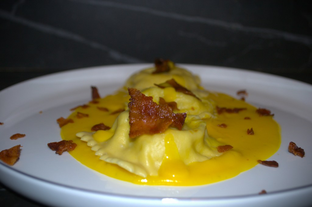 Un primo piatto fusion e ricercato, che partendo da elementi poveri (almeno una volta, ormai anche il merluzzo costa “an arm and a leg”) e molto diffusi, crea una portata gourmet, degna di un ristorante di livello: pasta ripiena, emblema dell’Italia con una salsa allo zafferano, dai sapori mediorientali, e con una sapida e croccante aggiunta del bacon tanto amato in USA – ed ovunque diciamocelo pure: il bacon migliora tutto! Un piatto terra e mare davvero molto saporito e gustoso, che può essere utilizzato tranquillamente per coccolarsi o un pranzo speciale.
