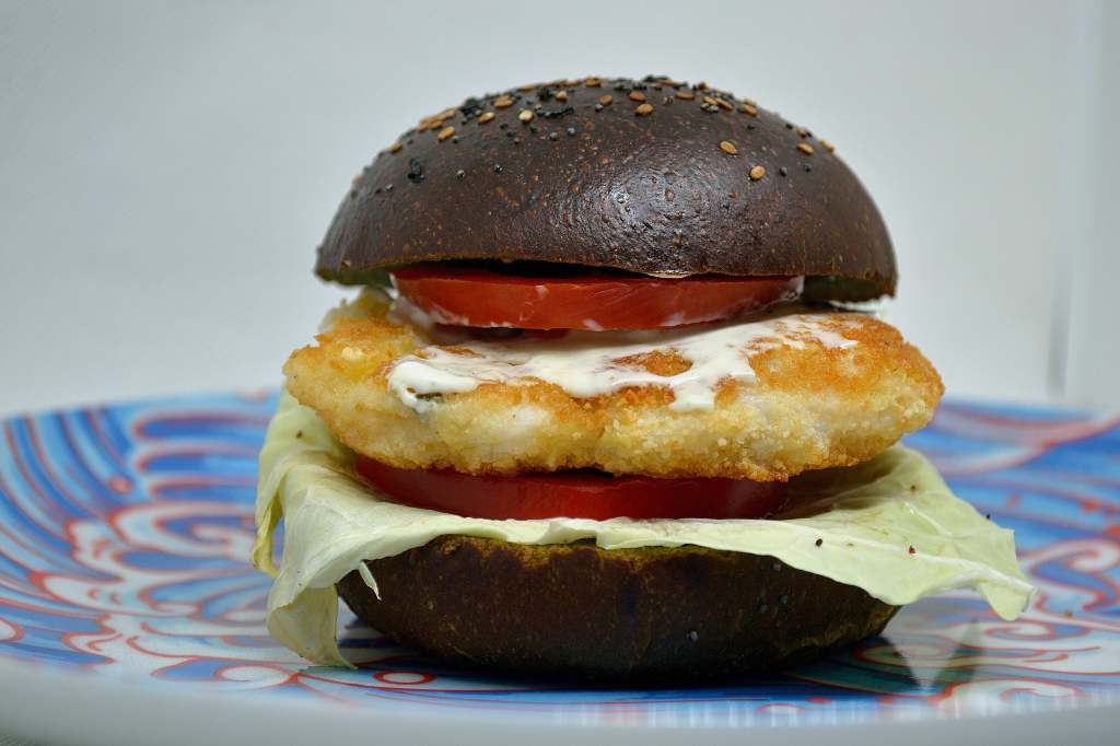 Fishburger con buns alla spirulina