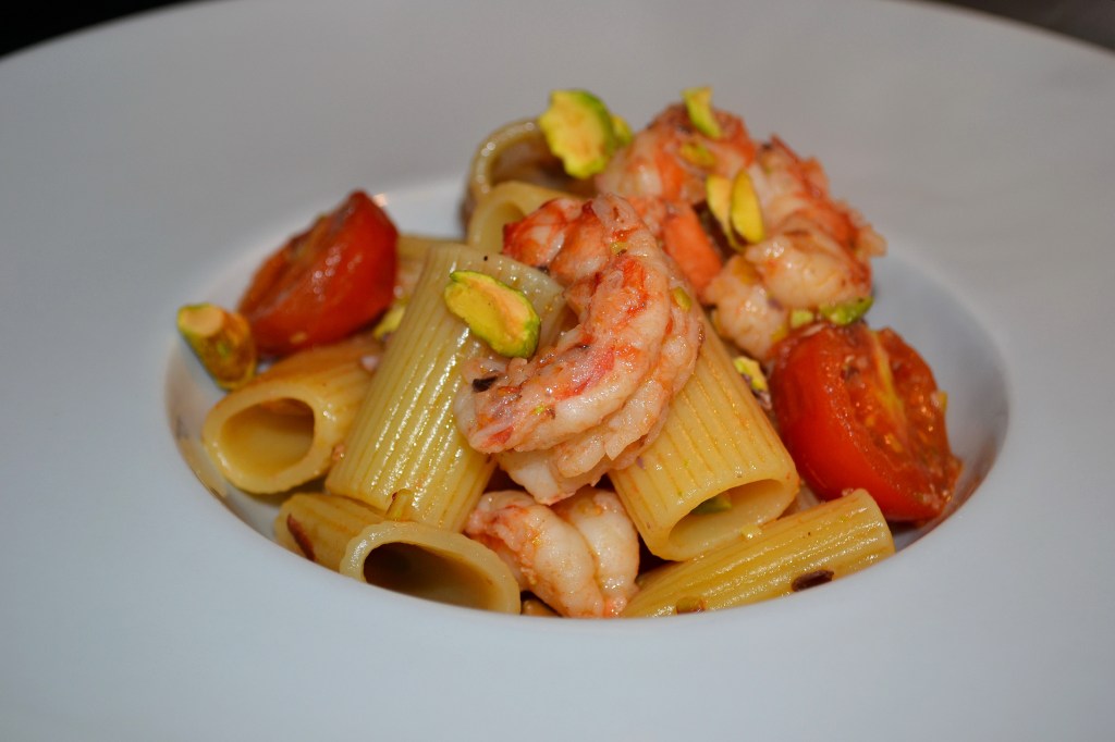 Mezze maniche gamberi e pistacchi